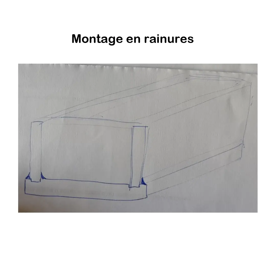 🔧 Montage technique : rainures + collage bi-composant avec débords extérieurs