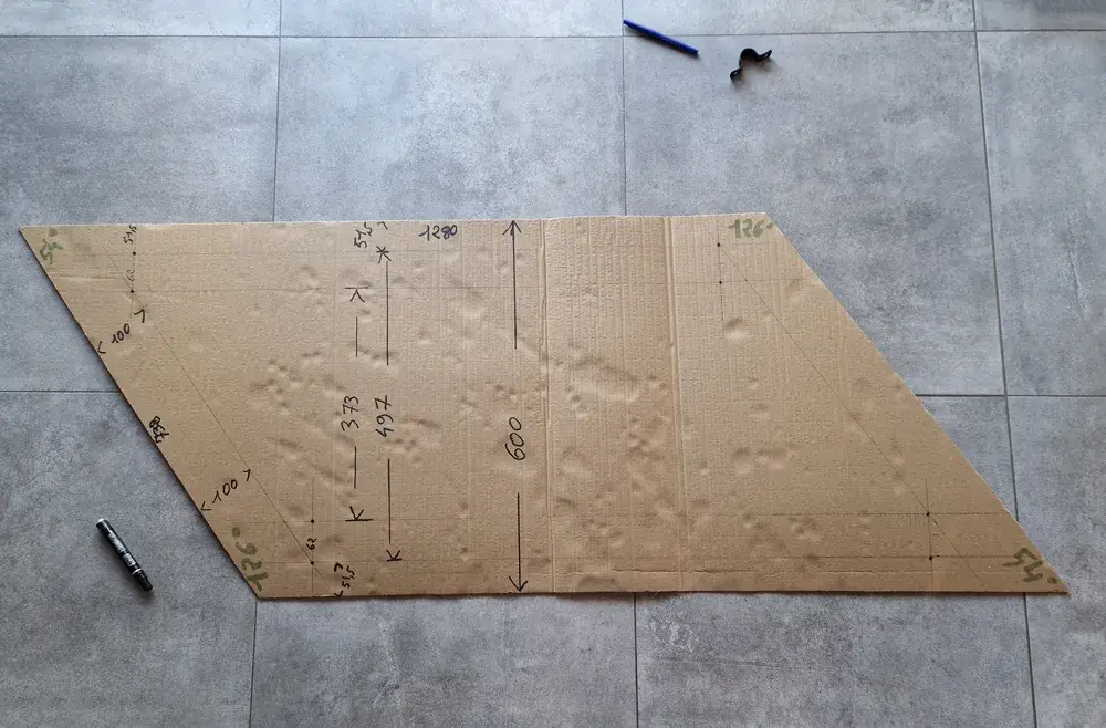 | Escalier | Parallélogramme 1280 × 750 | 3 | Angles 54°/126°, perçages Ø5 mm |