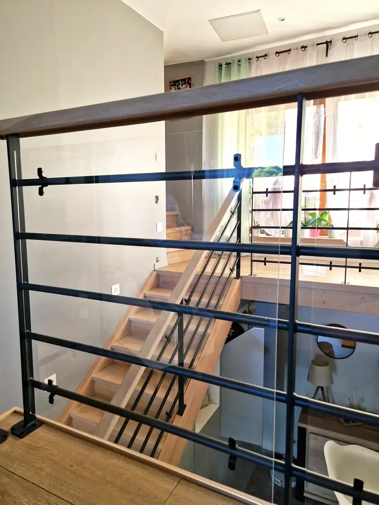 - Préserver la luminosité dans le séjour avec un garde-corps vitré.