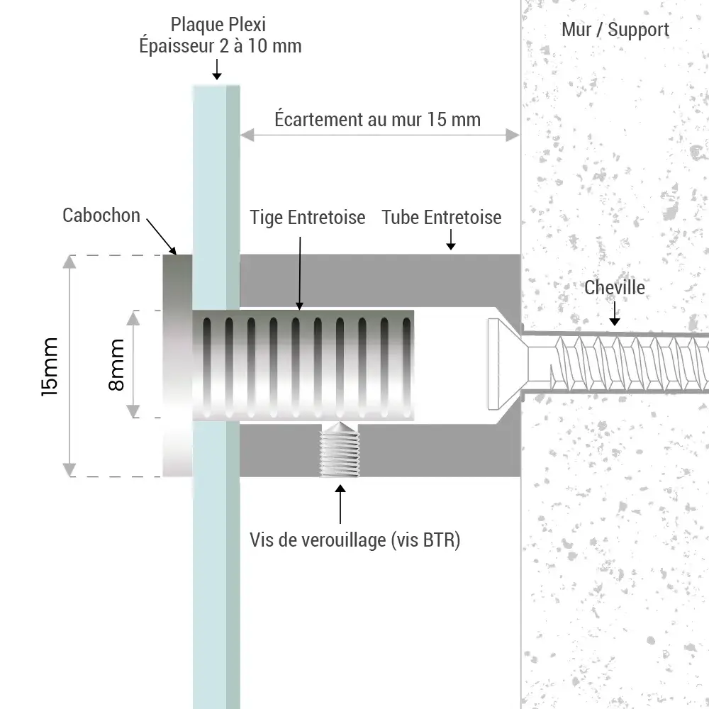 Fixation murale par vis ou entretoises