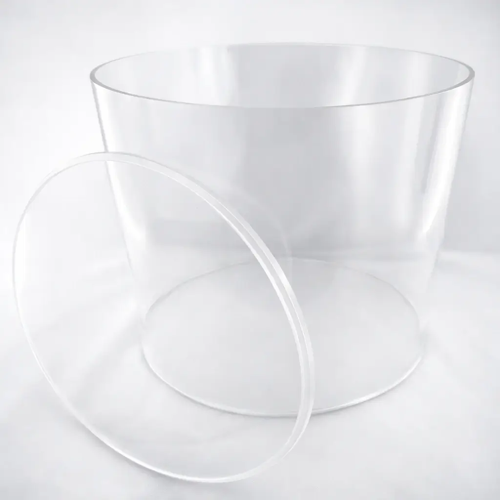 Tube transparent sur mesure en Plexiglass disponible avec ou sans fond et avec ou sans couvercle emboîtable. Fabrication française de haute qualité en Plexiglass coulé transparent (CN/GS), offrant une transmission lumineuse de 92 %, supérieure au verre. Choisissez vos dimensions parmi les diamètres 15 cm, 20 cm et 25 cm et les hauteurs de 15 cm à 100 cm pour créer un tube Plexiglass transparent sur mesure parfaitement adapté à votre besoin.