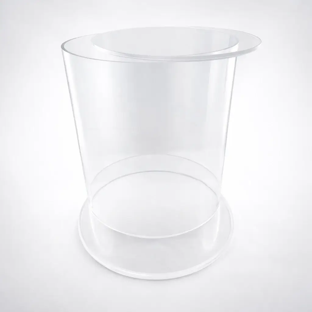 Cette vitrine ronde en Plexiglass sur mesure est un tube transparent premium, disponible avec ou sans fond et avec ou sans couvercle. Fabrication française, transparence 92 %, idéale pour protéger et exposer figurines, objets d’art et collections.
