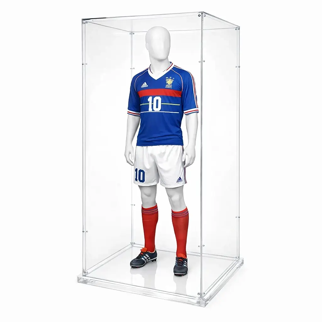Ce présentoir est une vitrine Plexiglas 2 mètres – taille mannequin, conçue pour répondre aux exigences les plus élevées en matière d’exposition, de conservation et de mise en valeur d’objets ou de silhouettes grandeur nature. Pensée pour les musées, galeries, collectionneurs privés, institutions culturelles et espaces retail haut de gamme, cette vitrine associe transparence absolue, stabilité structurelle et finitions premium.